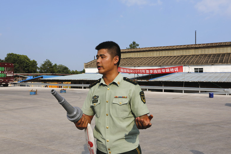 下午4點,掛雞平臺附近的水泥地板,酷熱難耐。年輕的中隊長劉進勇滿臉是汗,綠色的軍裝早已濕透。