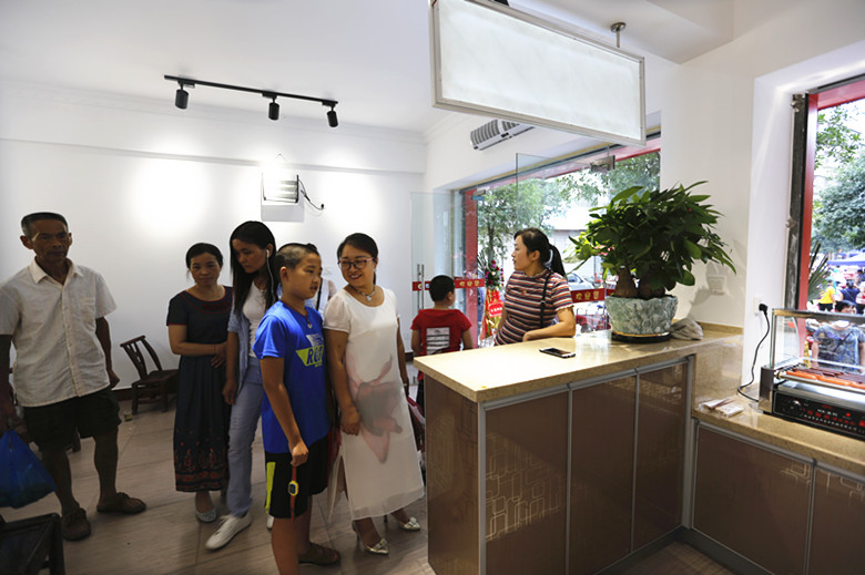 不光店內,店外的桌子旁,前來咨詢、購買的人也絡繹不絕。