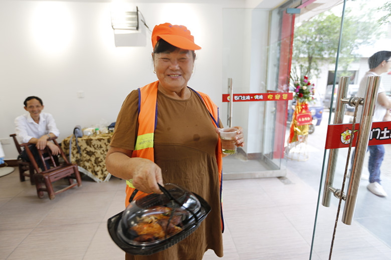 這時,店內進來了一位環衛工阿姨,阿姨說“我家孫子嘴可挑了。他還沒吃過烤雞,給他買一只。如果好吃,我下次再來買。”