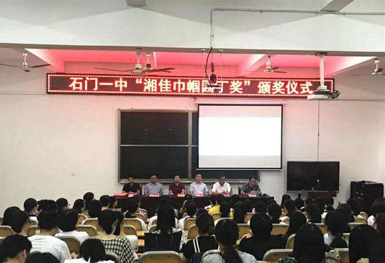 9月10日下午,“湘佳牧業石門一中巾幗園丁獎”頒獎儀式在石門一中大禮堂隆重舉行。