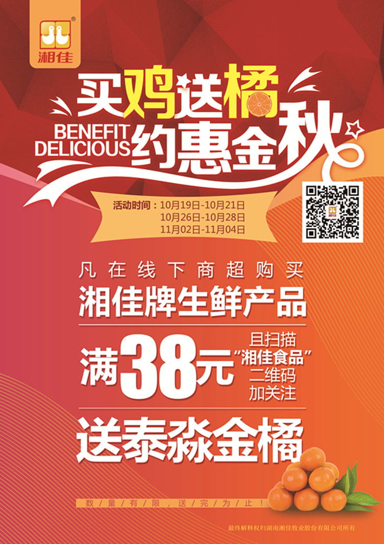 為感謝廣大顧客對湘佳牧業(yè)的厚愛,湘佳牧業(yè)將在全國各大超市開展一年一度的“金秋送橘”活動。