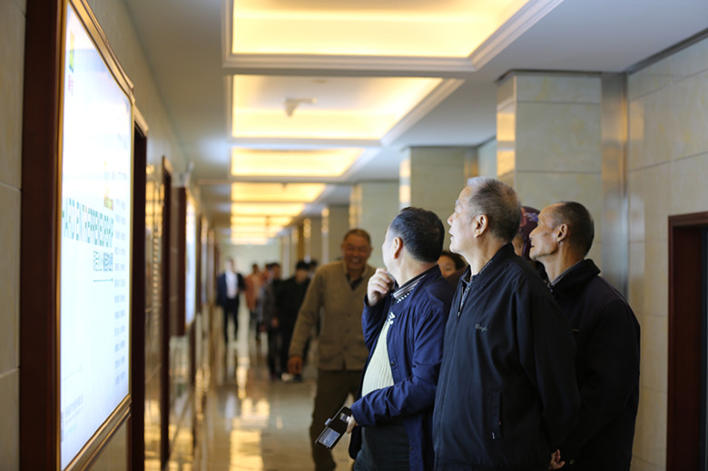 40多位老同志在講解員的帶領(lǐng)下,進(jìn)入產(chǎn)業(yè)園二樓的文化長(zhǎng)廊。