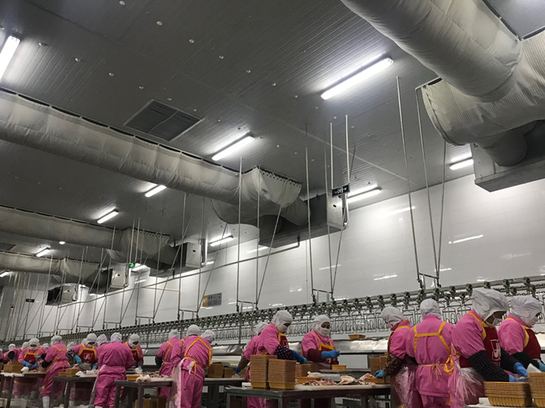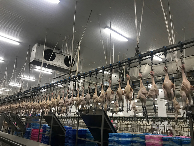 掛雞平臺(tái)、水冷車間、風(fēng)冷車間、裝雞平臺(tái)、分割車間、質(zhì)控中心,他們邊看,邊聽,邊咨詢,邊拍照……