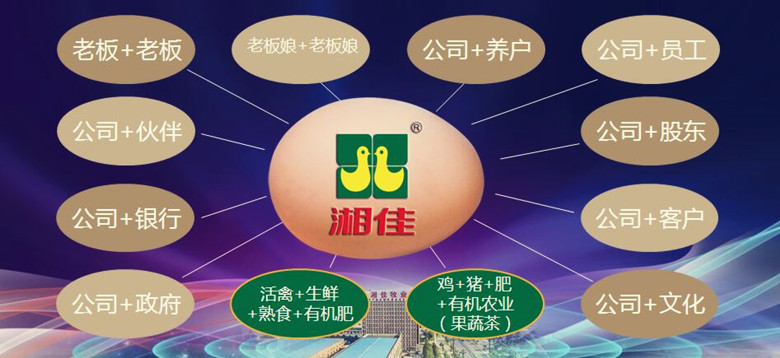 湘佳牧業(yè)于上世紀(jì)90年代由喻自文、邢衛(wèi)民兩位創(chuàng)始人共同創(chuàng)立,經(jīng)過近30年的奮斗,成為湖南唯一一家從農(nóng)場到餐桌、從農(nóng)場到農(nóng)場的優(yōu)質(zhì)家禽養(yǎng)殖加工和有機(jī)肥加工全產(chǎn)業(yè)鏈企業(yè)、農(nóng)業(yè)產(chǎn)業(yè)化國家重點(diǎn)龍頭企業(yè)、中國生鮮家禽行業(yè)領(lǐng)軍企業(yè)。目前,公司擁有員工近5000人,多品類家禽產(chǎn)品暢銷全國20多個省市區(qū)。