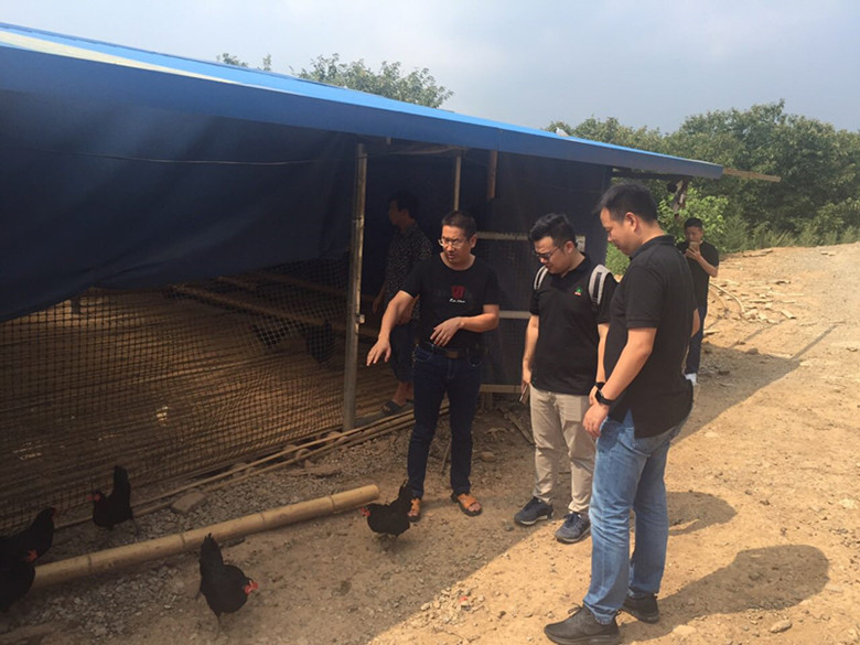 8月19日,東莞嘉榮超市供應鏈公司總監胡國明、生鮮部總監柯志一、采購部經理李朝友千里迢迢從繁華都市來到湘西山城,參觀石門三圣鄉天門埡村的湘佳牧業石門土雞養殖基地。
