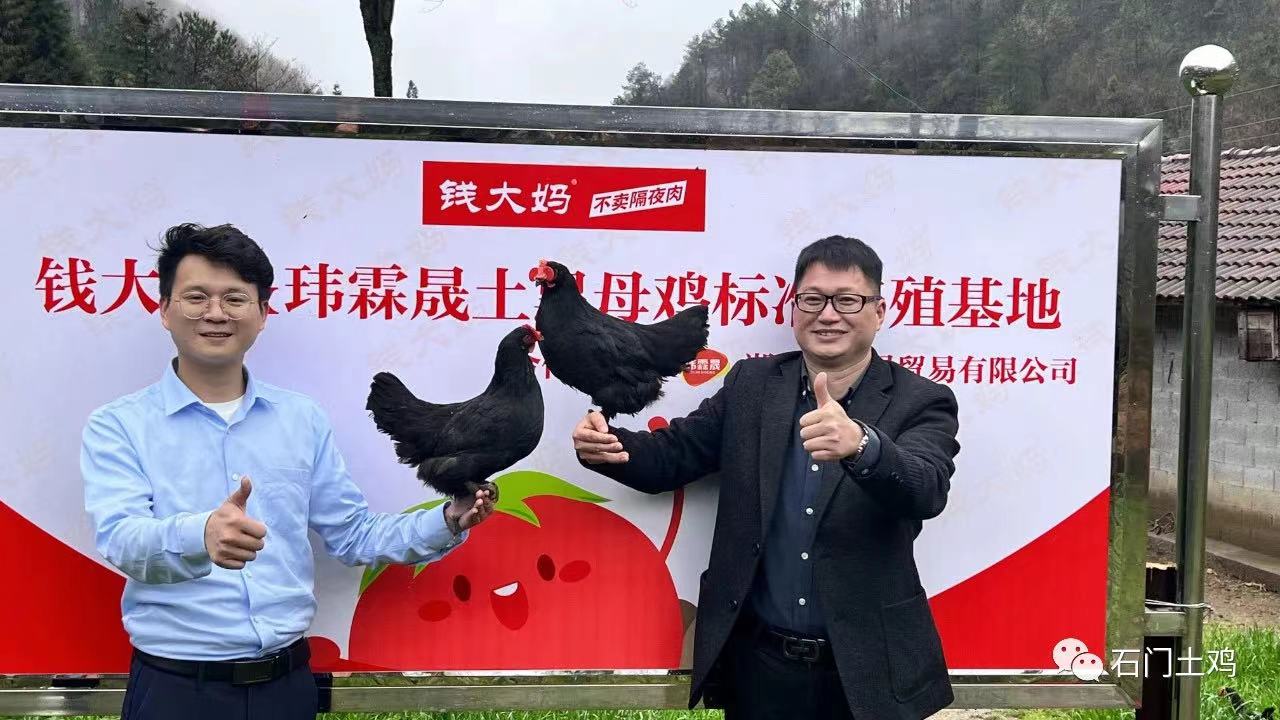 4月3日,錢大媽華中區采購負責人楊飛一行,在湘佳股份優雞部總經理鄭澤敦和瑋霖晟貿易公司總經理劉小龍陪同下,從石門縣城驅車120多公里,專程踏訪湘佳股份“土黑母”養殖基地,并為錢大媽&瑋霖晟土黑母雞標準化養殖基地揭牌。